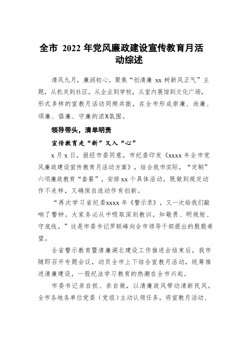/ 全市2022年党风廉政建设宣传教育月活动综述