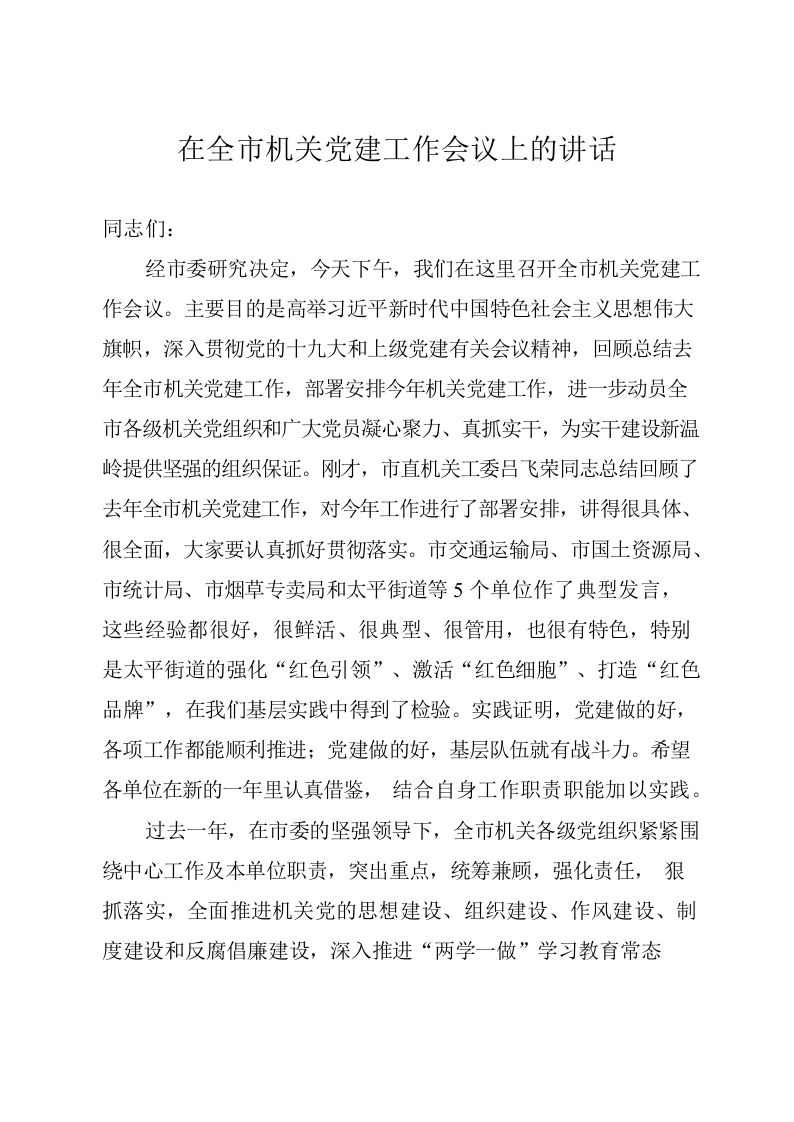 / 全市机关党建工作会议上的讲话