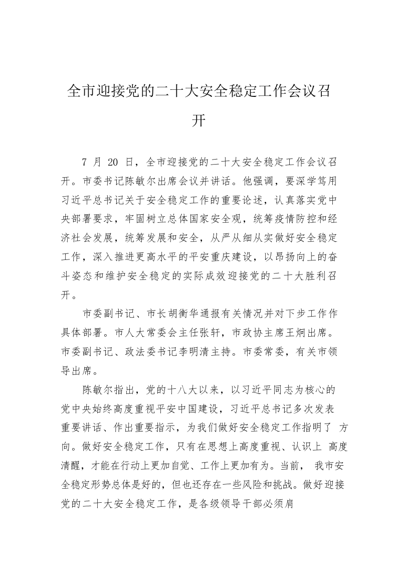 / 全市迎接党的二十大安全稳定工作会议召开(20220721)